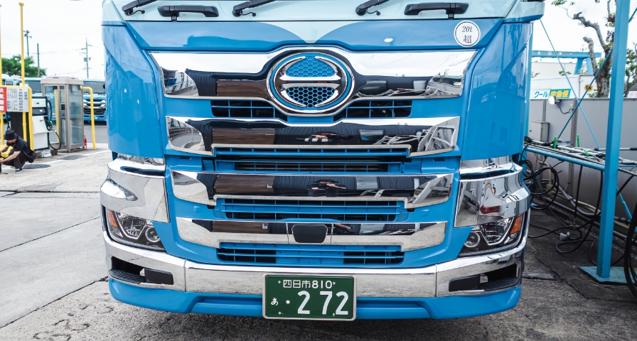 入社時からずっと乗りたかった、日野のフロントマスクのデザインがとても気に入っています!